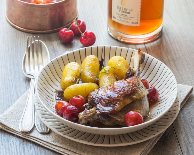 Oubliez le canard à l’orange, aujourd’hui, laissez-vous séduire par une recette mettant à l’honneur un fruit de saison : le canard aux cerises ! Cette préparation a été conçue pour le concours "Trophée Chopin", où l’on nous a invité à créer une recette intégrant un Ratafia de Champagne.