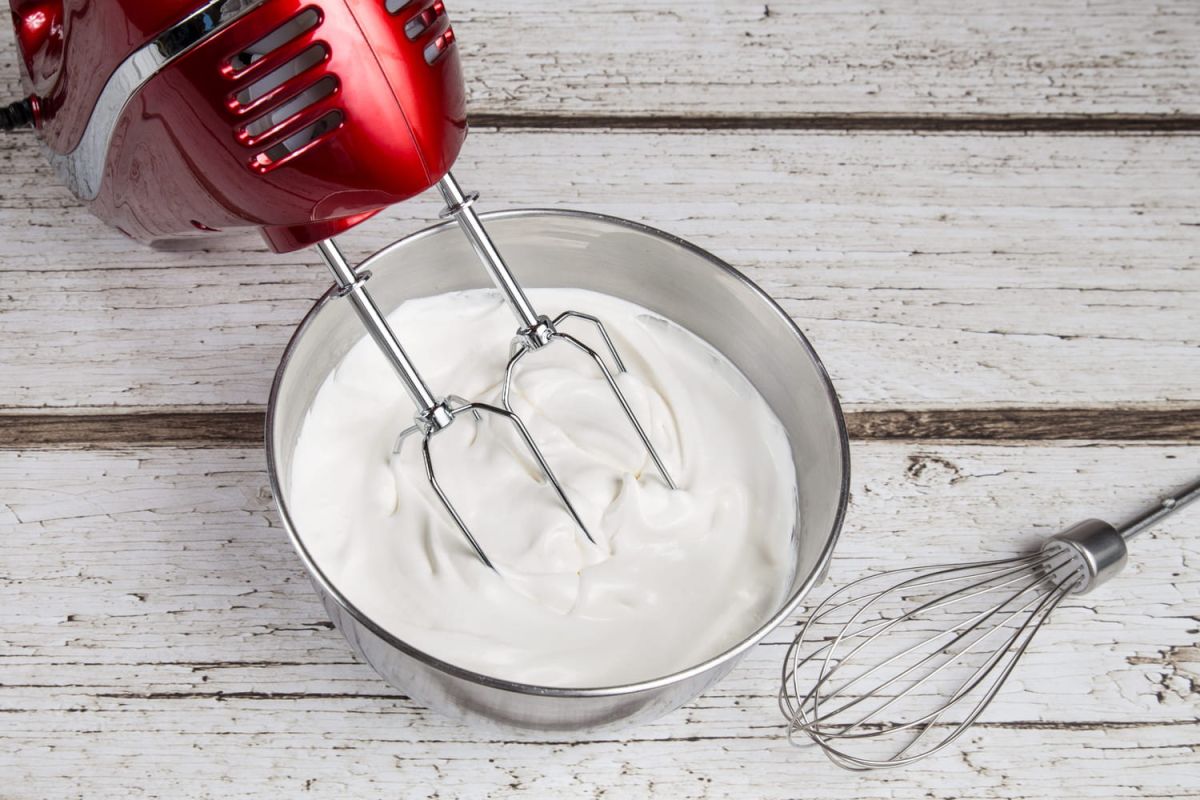 Étape 4 : Battez vigoureusement la crème pendant plusieurs minutes, prévoyez environ 7 à 10 minutes, mais cela peut être réduit de moitié avec le fixateur ou un batteur électrique.