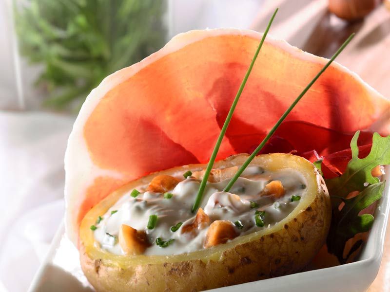 - Eventail de jambon serrano et pommes de terre farcies à la noisette : Une préparation simple et raffinée qui met en avant le goût délicat du jambon. Les pommes de terre farcies offrent une texture croquante tout en complétant parfaitement le jambon.