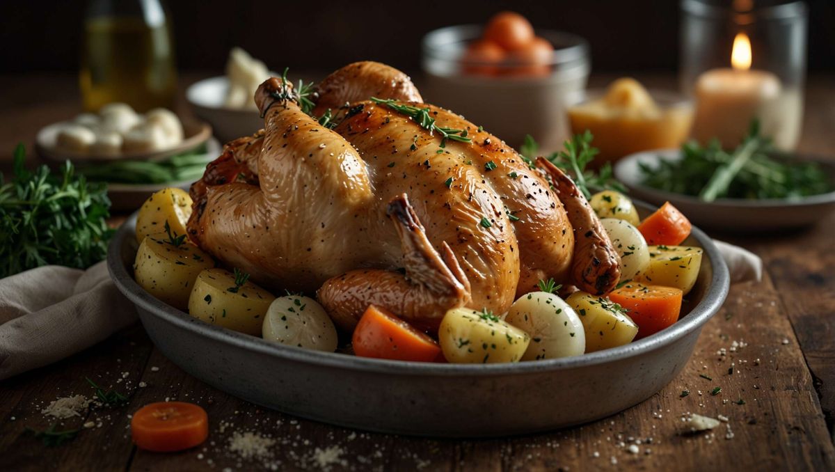 Un Chardonnay aux notes crémeuses accompagnera parfaitement ce plat, grâce à sa capacité à s’harmoniser avec la douceur du poulet et des légumes rôtis.